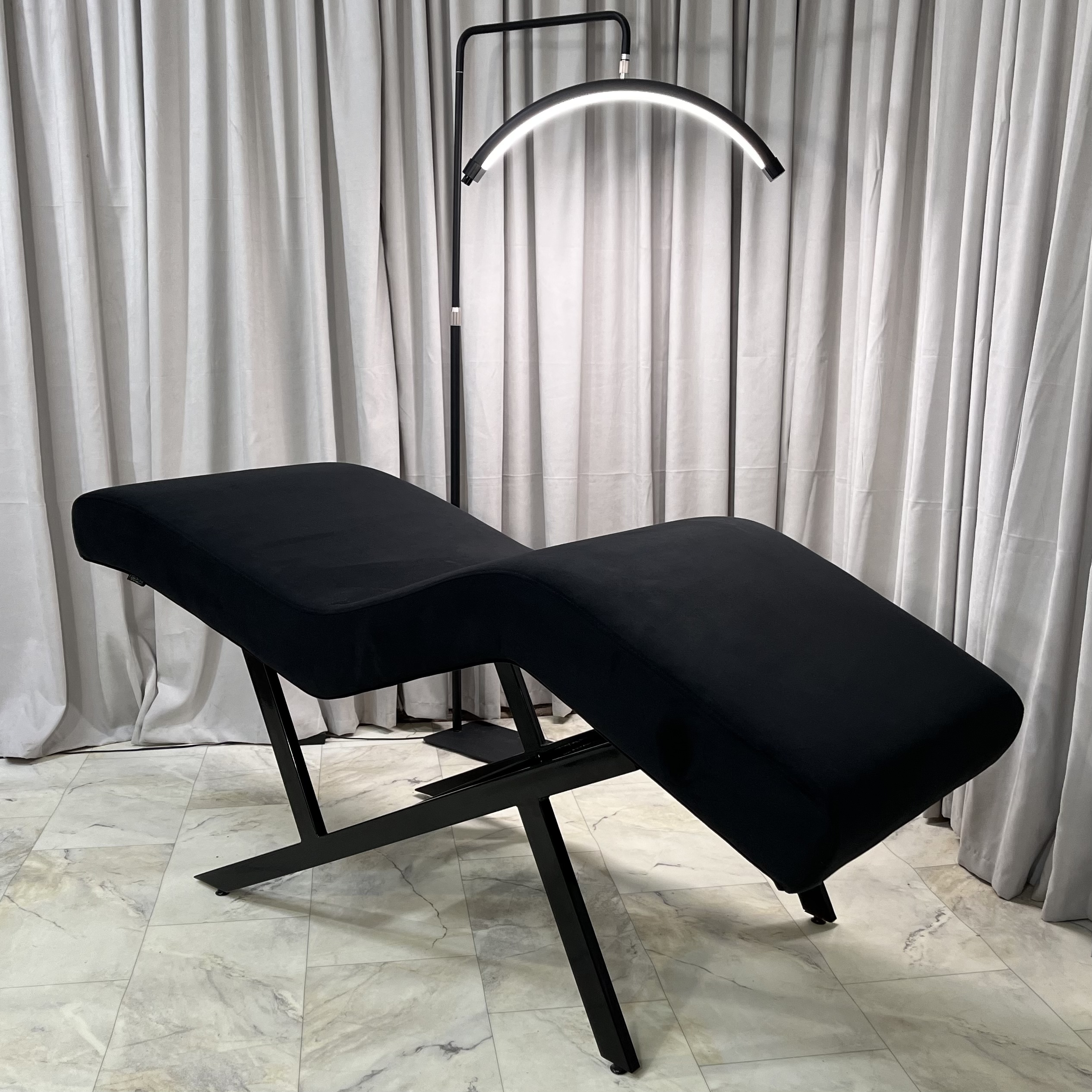 Кушетка для мастеров перманентного макияжа и татуажа: подъезжайте к кушетке на стуле с разных сторон - прямая ножка в изголовье создана именно для этого.